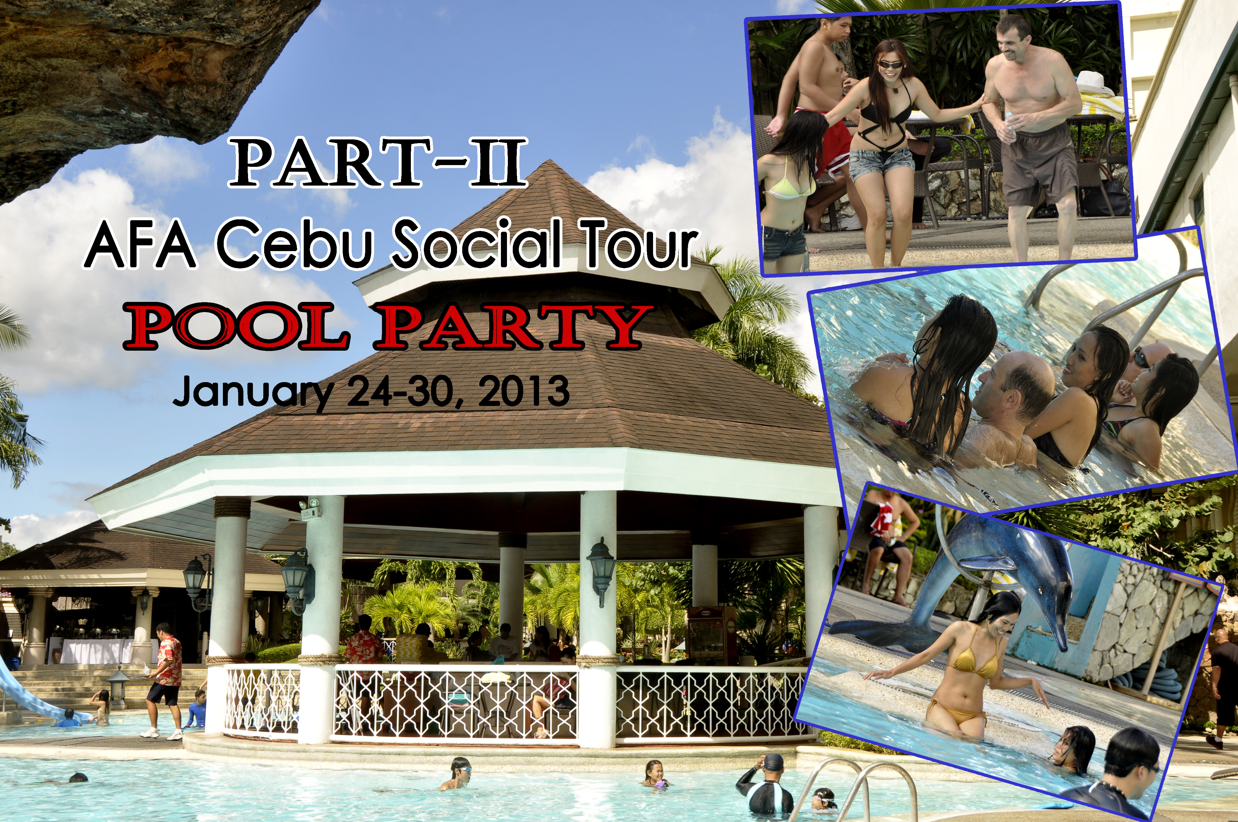 One of the most anticipated parts of the Cebu Socials is the pool party. Attire is simple; kick back in flip-flops and swimsuits. There's no better way to combine cooling off and having fun with your dates and friends at the pool. It's very entertaining to perceive these sexy Philippine girls as you dive-in and enjoying the cool water and heat of the sun with our January tour clients. Stop worrying about what to do and who to be with because our special Filipino women from Cebu are here with open arms ready to meet you. All you have to do is to be here and experience this amazing adventure. The most important thing is that YOU are in attendance! You should be absolutely certain to join our next tour this coming August 2013 and be the next man to realize his dreams by meeting the one incredible Philippine woman meant for him.